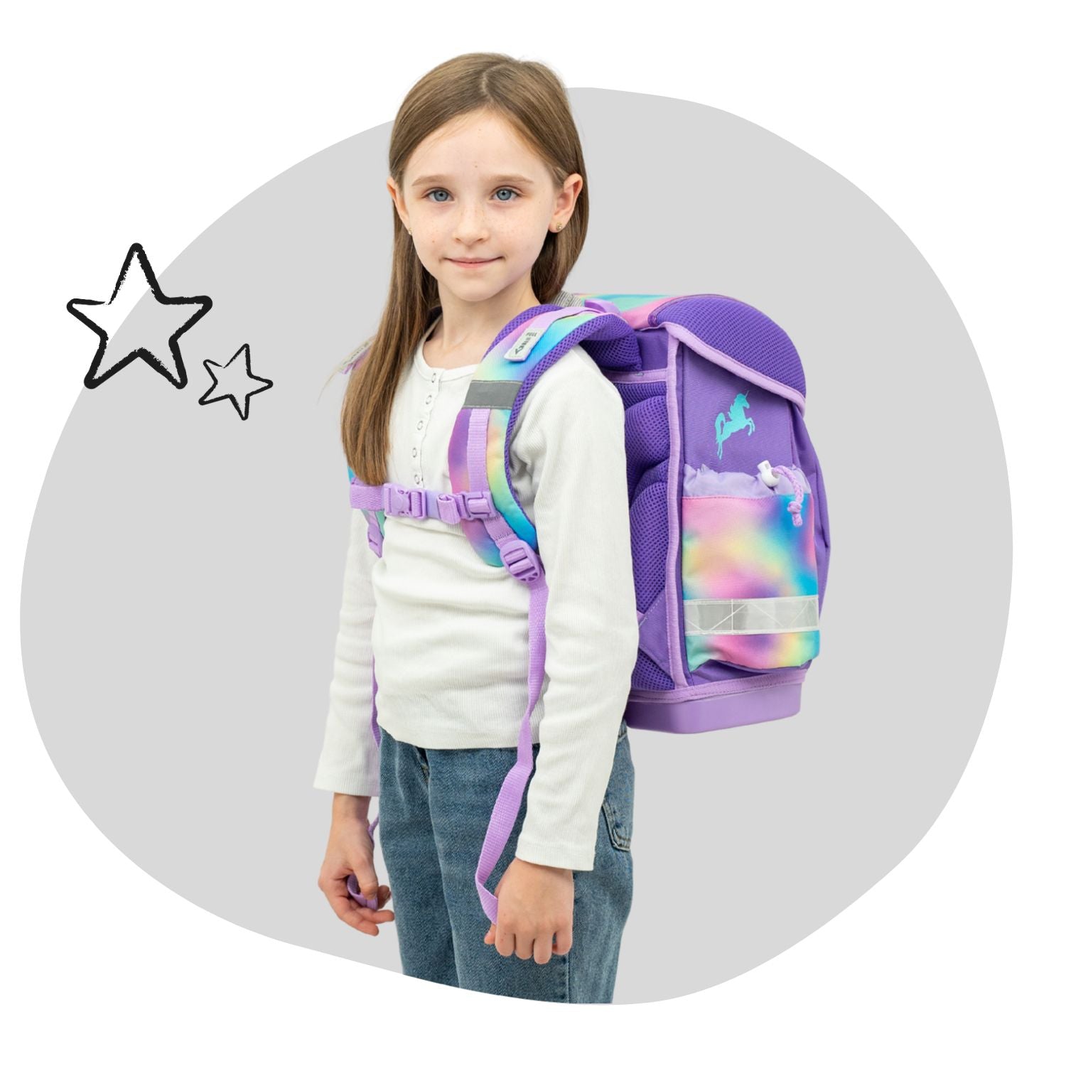 Meke i udobne naramenice (koje su podesive na gornjem i donjem delu) i podesivi grudni kaiš garantuju nošenje torbe bude ugodno svakom detetu tokom celog dana.Zadnja strana torbe se savršeno prilagođava i štiti leđa i kičmu deteta, čime se obezbeđuje udobno nošenje!